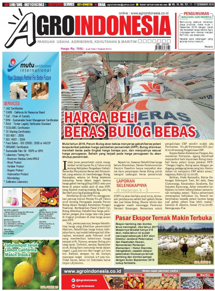 MAGAZINE AgroIndonesia, edisi No. 707 (11-17 Desember 2018) By redaksi - 11 December 2018 Share on Facebook Tweet on Twitter tweet