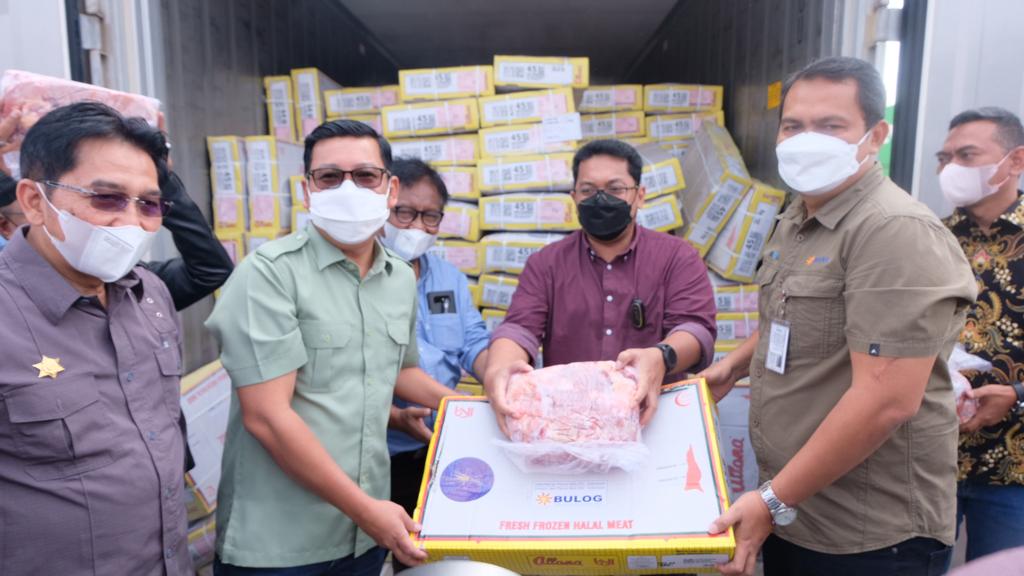 Direktur Supply Chain dan Pelayanan Publik Perum BULOG Mokhamad Suyamto bersama Kepala Badan Pangan Nasional (BPN/NFA) Arief Prasetyo Adi memantau langsung kedatangan daging tersebut.