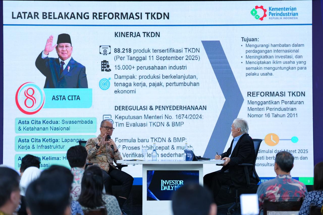 Kementerian Perindustrian (Kemenperin) telah menerbitkan Peraturan Menteri Perindustrian (Permenperin) Nomor 35 Tahun 2025 tentang Tata Cara Penerbitan Sertifikat Tingkat Komponen Dalam Negeri (TKDN). Regulasi baru ini menjadi tonggak penting dalam memperkuat ekosistem industri nasional melalui kebijakan yang lebih murah, mudah, cepat, dan berbasis insentif.